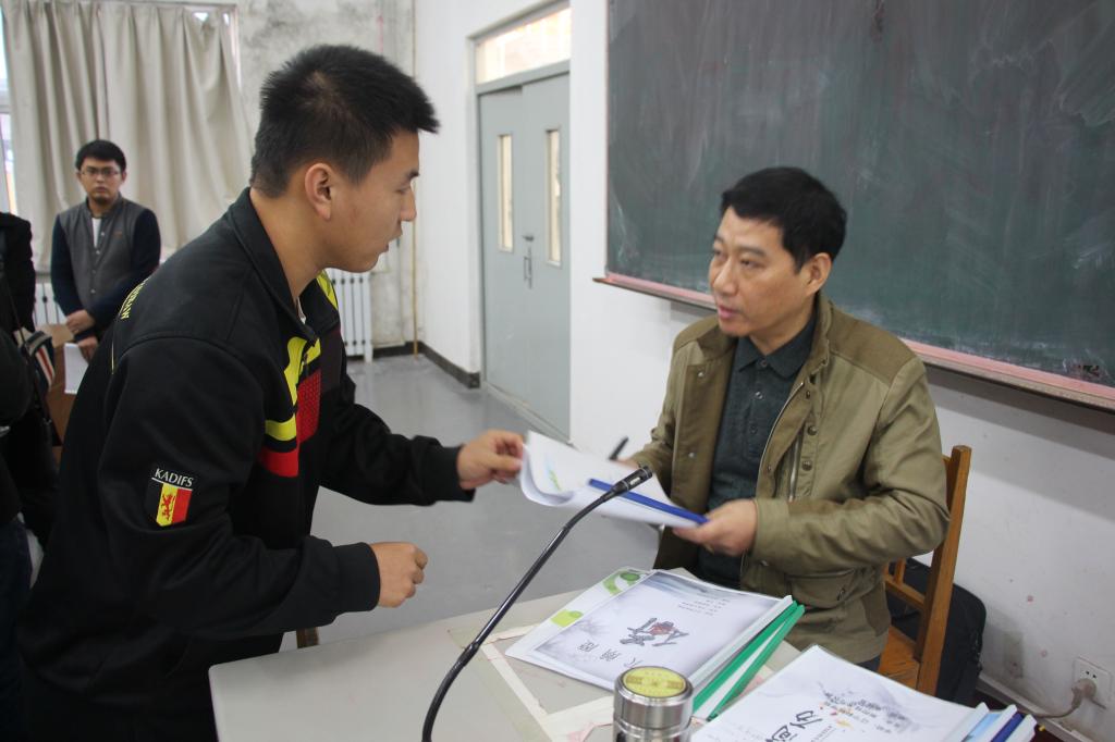 图为毕业生接受企业面试
