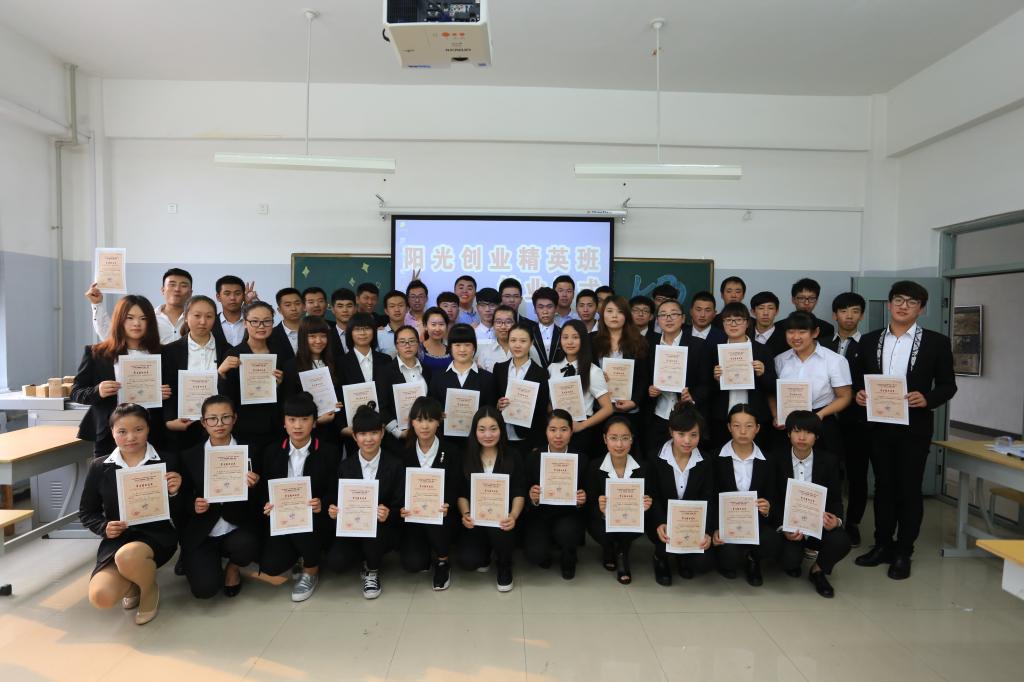 为贯彻党中央、国务院“大众创业,万众创新”的新理念,落实辽科院委发〔2015〕1号《辽宁科技学院2015年党政工作要点》,成立创业学院,培养“企业家型”复合型人才,探索我校人才培养模式改革的新路,从我校本科大一、大二,专科大一3000余名学生通过简历筛选、面试最终选拔出60名学生精英,成立阳光创业精英班,为创业学院招收首批学员,自4月22日开课以来,历时近1个半月,有57名同学顺利结业,并于6月16日下午3点在艺术楼305教室举行了首批阳光创业精英班的结业仪式。
