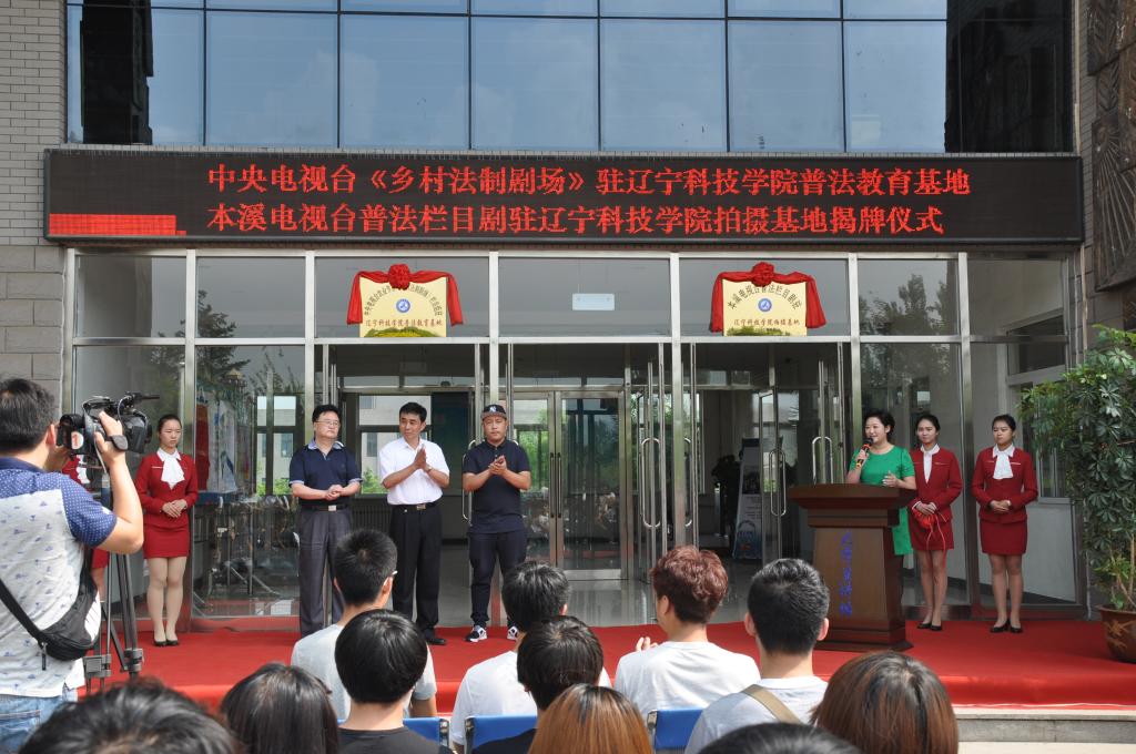 6月13日,中央电视台《乡村法制剧场》驻我校普法教育基地、本溪电视台普法栏目剧驻我校拍摄基地揭牌仪式在我校艺术楼前成功举行。辽宁科技学院副校长丛树林、中央电视台《乡村法制剧场》外联主任姜大卫、本溪市广播电视台党委书记邱文利共同为我校普法教育基地成立举行揭牌仪式。仪式由本溪市广播电视台红杨主持。