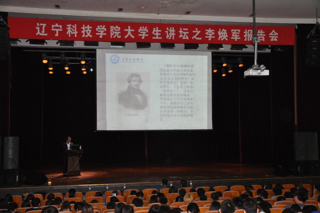 5月21日下午,辽宁科技学院大学生讲坛之李焕军专题报告会在艺术楼大学生活动中心成功举行。管理学院院长李焕军做客本期讲坛,做了题为《摄影作品鉴赏》精彩报告,学校辅导员、班主任老师,学生工作处人员和800余名学生一同聆听了报告会。报告会由学生工作处副处长刘广春主持。