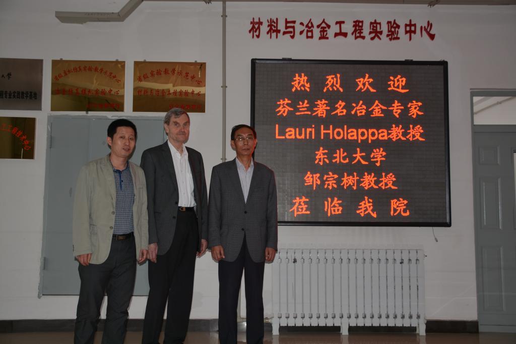 5月18日,芬兰著名冶金专家Lauri Holappa教授来我校进行访问,一行随同访问的还有东北大学邹宗树教授和邵磊博士。冶金学院院长陈韧、党总支书记马贺利等负责了接待工作。