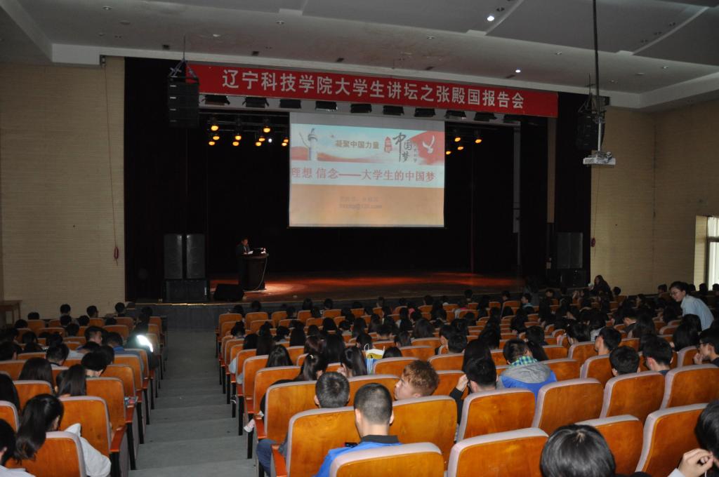 4月23日下午,辽宁科技学院大学生讲坛之张殿国专题报告会在艺术楼大学生活动中心成功举行。我校思想政治理论课教研部张殿国老师做客本期讲坛,做了题为《理想信念——大学生的中国梦》精彩报告,各院系辅导员、班主任老师,学生工作处人员和800余名学生一同听取了报告会。报告会由学生工作处副处长刘广春主持。