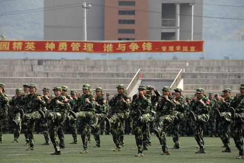 各营连随后进行队列汇报和擒敌防身术等军训特色科目表演。表演中,同学们意气风发、气势恢弘,男生组成的擒敌方阵展示了豪迈阳刚之气,女子队列汇报大气恢弘,展现了学校新生的良好风貌,也体现了本次军训的丰硕成果。最后,全体教官表演擒拿格斗,他们身手敏捷,显示出当代军人铮铮铁骨的风采。