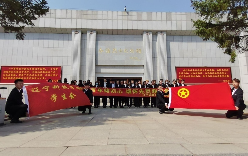“继承革命先烈遗志,拥护中国共产党的领导,热爱祖国、热爱人民,把祖国和人民的利益放在第一位,发扬不怕牺牲的精神,为实现中华民族伟大复兴的“中国梦”,奋斗不息!”。清明节前夕,在深入开展党史学习教育之际,为缅怀革命先烈的丰功伟绩,传承革命先烈的光荣传统,加强对团员青年的党史教育,校团委组织学生会骨干、青马学员代表在本溪市烈士陵园内郑重宣誓。广大团学骨干身着正装为英雄先烈敬献鲜花、致敬默哀后在文化馆和烈士陵园举行了党史教育现场教学活动。通过情景浸入、倾听讲述、观看实物等方式,广大师生深入了解革命先烈的气壮山河的光辉事迹。