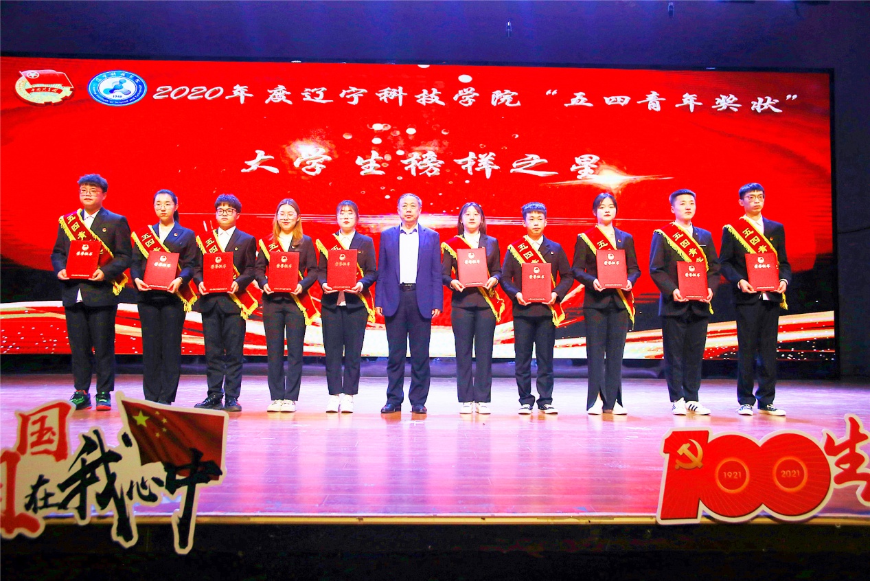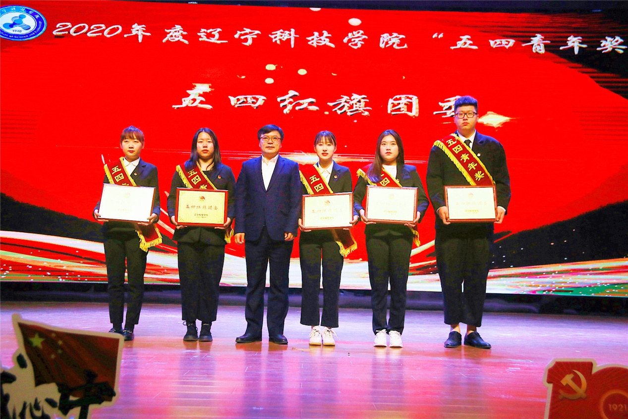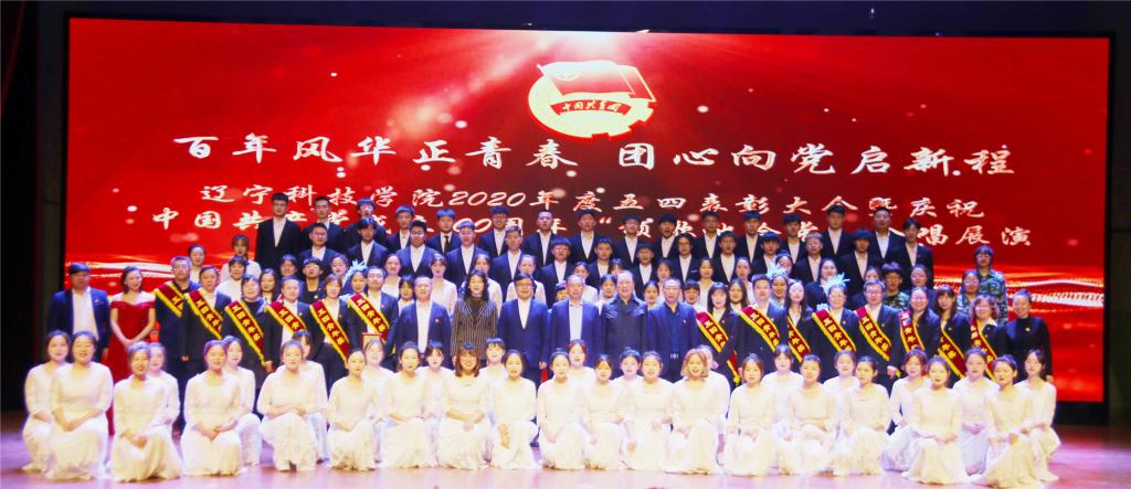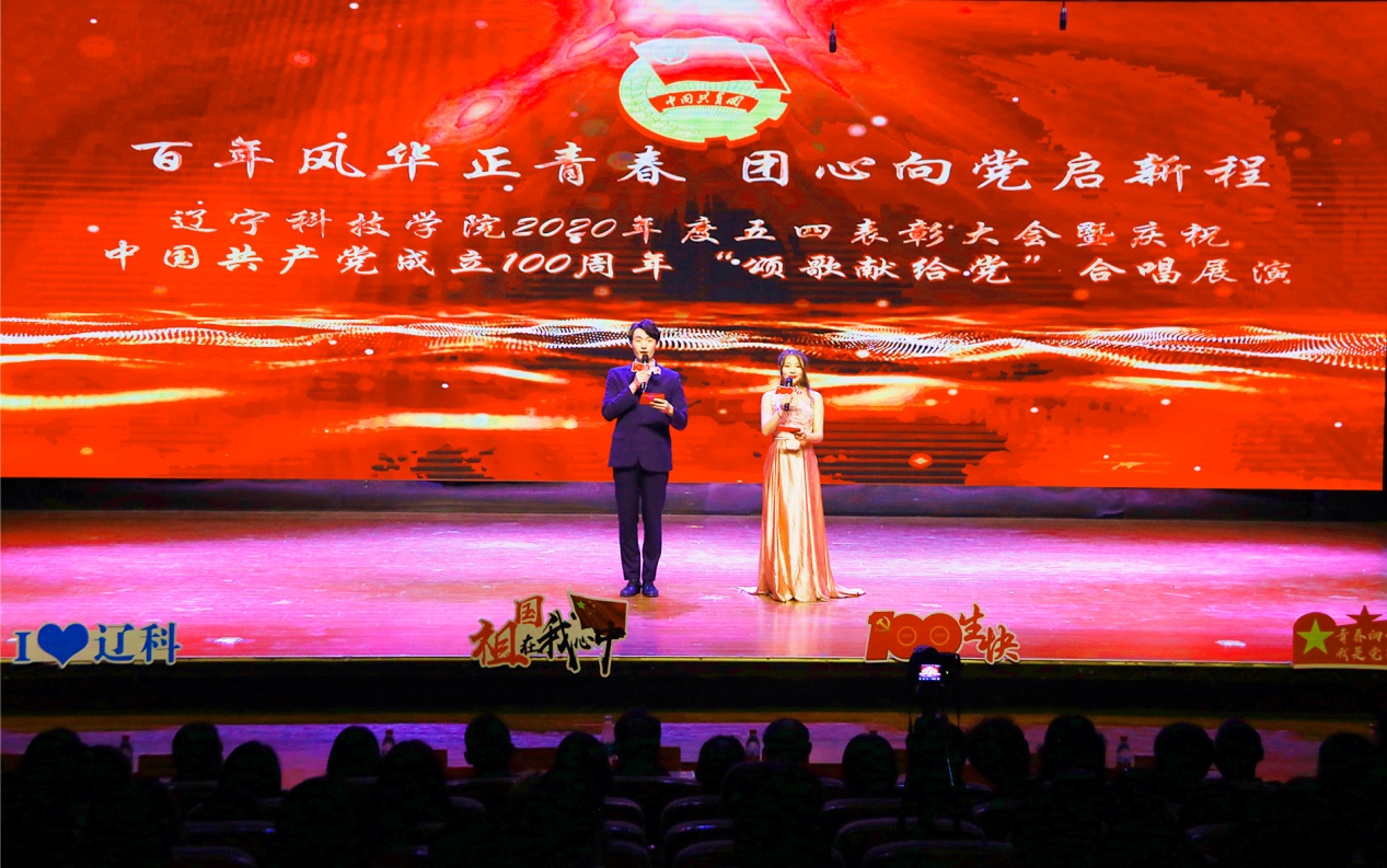 百年芳华赓续不辍,五四薪火筑梦青春。4月28日下午,辽宁科技学院在大学生活动中心隆重举行了庆祝中国共产党成立100周年,纪念五四运动102周年,2020年度五四表彰大会暨 “颂歌献给党”合唱展演,对过去一年来共青团工作中取得突出业绩的先进集体和个人进行表彰,通过经典红色颂歌传唱,传承红色基因,培育弘扬家国情怀。学校党委副书记、校长陈保东,党委副书记韩劲松,副校长吴国玺,副校长赵毅出席活动。党政办公室、学生工作处等相关职能部门领导,各二级院系党总支书记、副书记,获奖师生代表与近千名青年学子齐聚礼堂观看了本场盛会。