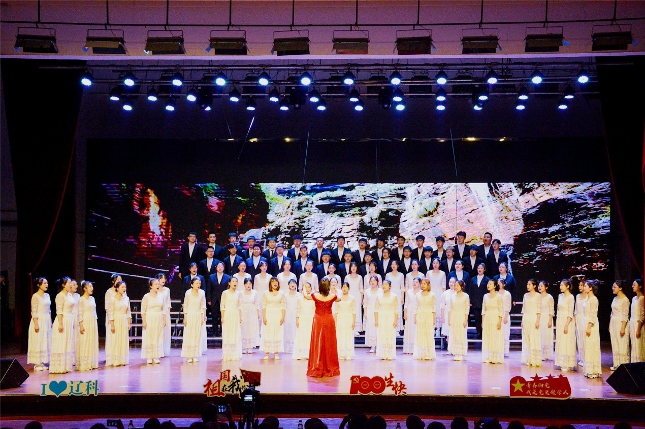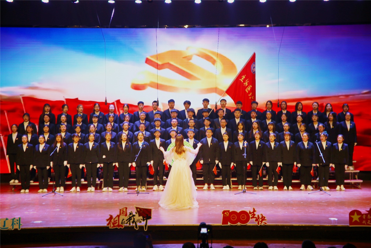 2021年,中国迈上新的历史征程,中国共产党迎来百年华诞。从浙江嘉兴一艘红船开始,中国共产党梦想启航,历经沧桑岁月,以星星之火燃起燎原之势。表彰大会结束后,各院系团组织及大学生合唱团用歌声回顾中国共产党百年历程,重温历史超燃瞬间,传承不变红色信仰。