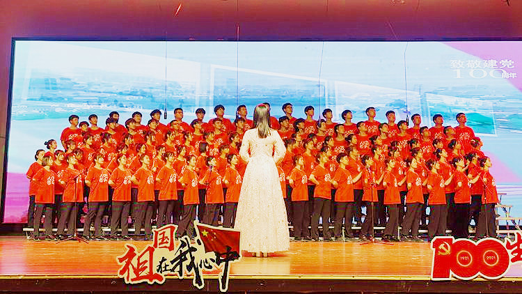 伴着《五月的花海》,全体师生用青春之歌致敬建党百年。