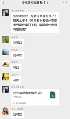 为坚决打赢校园疫情防控保卫战、歼灭战,落实补短板、强弱项、堵漏洞措施,狠抓校园“铁桶式”防控、全封闭管理,形成校内校外一盘棋,3月22日,学校疫情防控工作指挥部发出动员,号召家住学校附近的教职工志愿成立校外抗疫护校党员先锋队,在校外协助守好校园围墙,严防快递或外卖等物品通过围墙栅栏进入校园、严防校内学生翻墙外出、严防校外人员翻墙入内。为完成这艰巨的任务,党员志愿者们扛起党旗,用实际行动践行着校园疫情防控的使命和责任。
