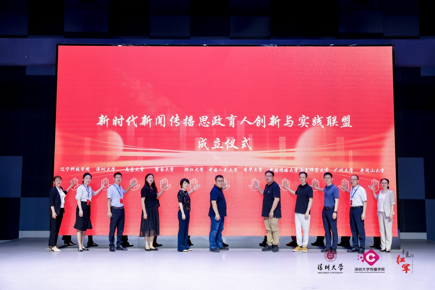 来自中国人民大学、清华大学、南京大学、浙江大学、中国传媒大学、暨南大学、华中科技大学、兰州大学、南京师范大学、南昌大学、陕西师范大学、广州大学、深圳大学、井冈山大学、辽宁科技学院等院校的代表共同参加了新时代新闻传播思政育人创新与实践联盟与基地成立仪式。联盟和基地旨在打造现代传播技术与红色文化创意传播有机融合的鲜活载体。我校成为新时代新闻传播思政育人创新与实践联盟单位,必将助力我校新闻传播学科下的广告学专业建设和红色文化思政育人的创新实践。