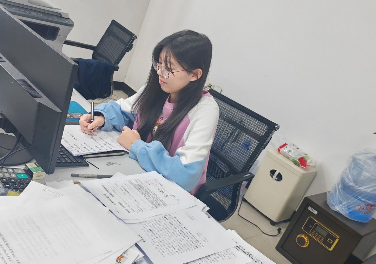 图为丁小涵同学在营口市站前区数据局进行数据整理