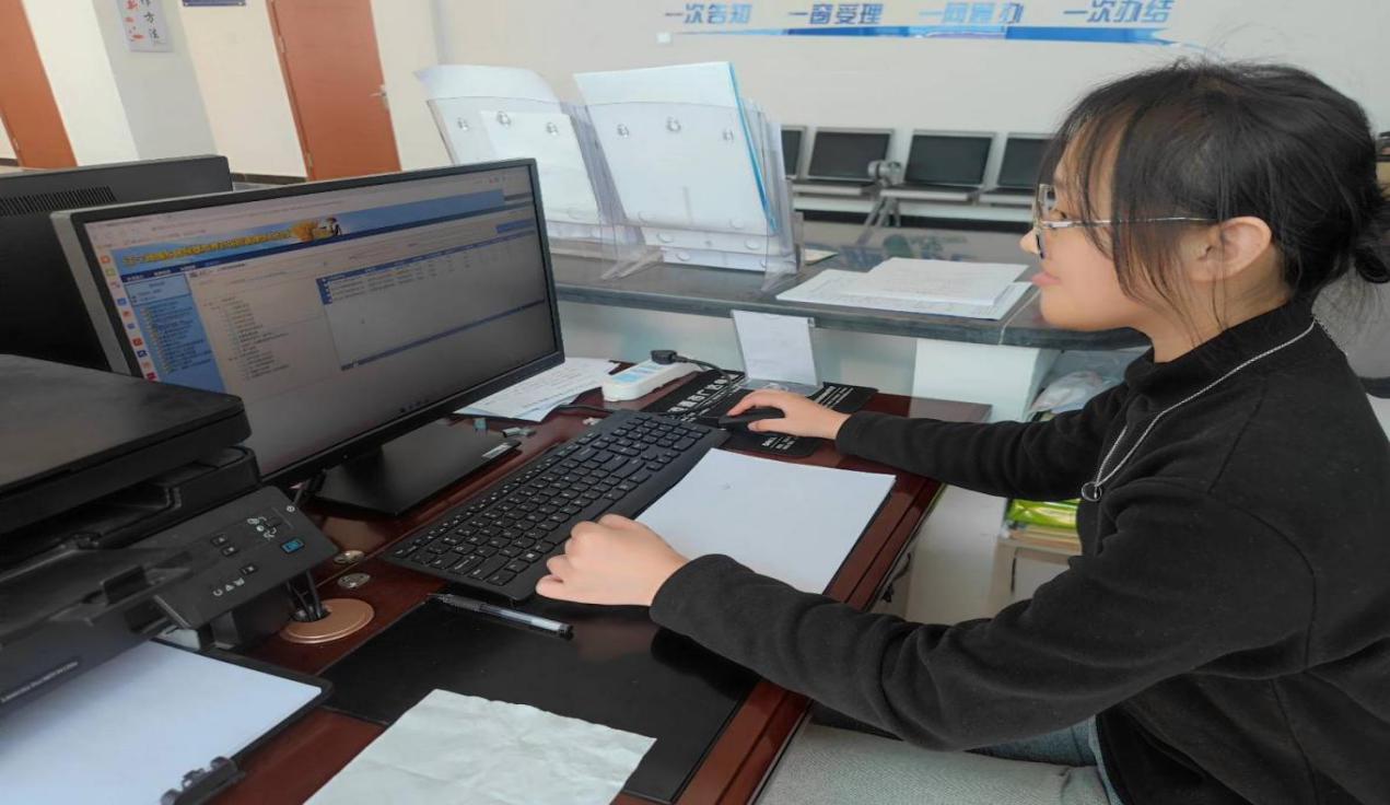 图为孙东楠同学进行养老保险查询工作