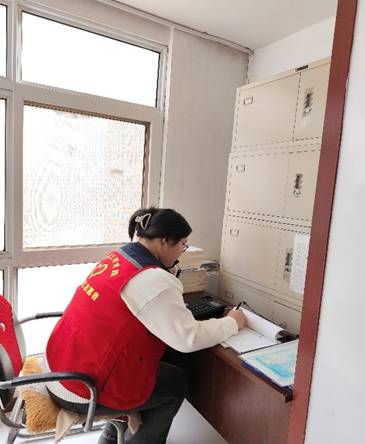 图为汤佳慧同学接听居民来访电话