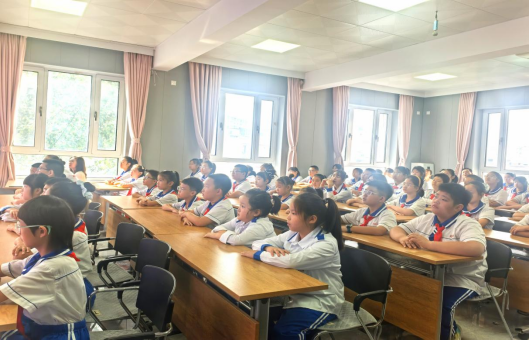 在东风中心小学,杨洪胤从学生们热议的9月3日纪念中国人民抗日战争暨世界反法西斯战争胜利80周年大会讲起,与学生们分享东北抗联和本溪地区的抗战故事,引发学生共鸣,鼓励学生肩负历史重任,怀揣爱国情怀,勇敢前行。