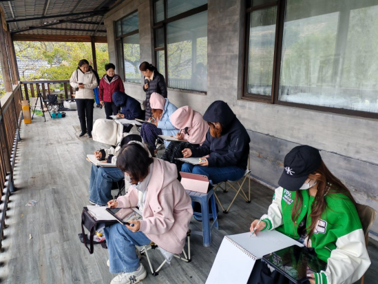 校院督导老师深入实习教学生活一线,实地走访了学生们的创作现场和生活空间,逐一观摩学生的写生与创作过程。他们认真观看了学生的素描、色彩写生及设计素材收集等作业,并不时与同学们交流创作心得,详细了解大家的实习进度、生活起居和遇到的困难。对同学们在天气骤冷时仍坚持写生创作的坚韧不拔精神和蓬勃的艺术朝气给予了高度评价。