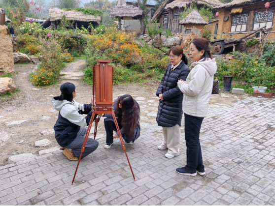 10月16日,人文艺术学院院长李春燕、教学副院长汪子入以及校督导老师陆慧、王绍静一行前往辽阳核伙沟画家村看望正在进行实践教学的环境设计与绘画两个专业的师生,并对实践教学进行了现场指导。期间,学院与核伙沟画家村梨园驿站正式签订协议,将其确立为“辽宁科技学院实践教学基地”并举行挂牌仪式。