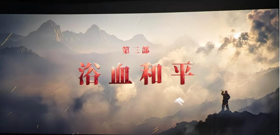 放映现场庄重肃穆、屏息成潮。黄继光纵身一跃以胸膛堵住枪眼的瞬间,光影定格,泪光同步闪动;冰雪坑道里,战士啃冻土豆、写绝笔家书,师生神情凝重、潸然泪下;谈判桌前,我方代表义正词严、寸土不让,大家又情不自禁攥紧拳头、心生敬佩。残酷与温情交织、宏大与细腻辉映,师生们在沉浸式光影中完成一次精神洗礼——深刻体悟志愿军将士的爱国主义、革命英雄主义与国际主义精神,深切感受“和平来之不易,吾辈更当珍惜”的思想淬炼。