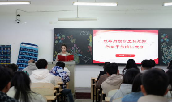 为夯实学生干部队伍建设,助力学院学生工作规范化、高质量开展,11月12日,电子与信息工程学院在博学楼1区411室举办“强基固本·思想铸魂·行动赋能”学生干部培训会议。学院党总支副书记潘丽娜、全体辅导员老师以及学院学生干部参加。
