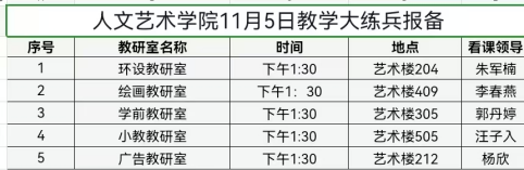 为夯实教师教学基本功,强化教师教学能力,提升课堂质量,促进教学经验交流,11月5日,人文艺术学院开展全员“教学大练兵”活动暨学院“聚智共研、淬砺匠心”教师教学能力提升活动第四期。