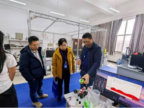 会议结束后,调研团队实地参观了辽宁工程技术大学电气与控制工程学院的自动化综合实验室、机器人技术实训中心、智能控制实验室等多个专业实验室。详细了解了《自动控制原理》《电力电子技术》《工厂供电》《嵌入式系统设计》等课程中的实操应用;在机器人技术实训中心,近距离接触了工业机器人工作站、协作机器人教学平台,辽工程教师现场演示了机器人编程调试、人机协同作业等实操课程,讲解了实训项目与企业实际生产需求的衔接方式;在参观博智超云学生创新工作室过程中,刘超老师专门为调研团队展示了学院学生自主研发的优秀作品,包括集成了传感器技术与自动控制算法的智能魔方、具备红外感应自动开合功能的智能垃圾桶,以及斩获睿抗机器人开发者大赛(RAICOM)国家一等奖的创新作品,详细讲解了作品的设计理念、技术原理、研发过程及在赛事中的核心竞争力,直观展现了辽工程在学生实践创新能力培养方面的显著成效。