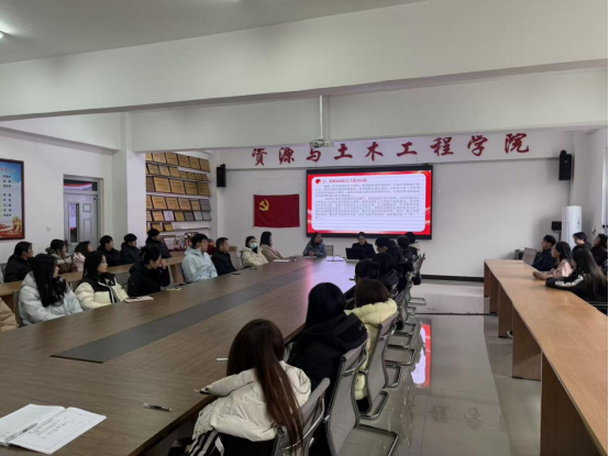 为深入学习贯彻党的二十届四中全会精神,引导学生党员准确把握《中共中央关于制定国民经济和社会发展第十五个五年规划的建议》,将个人成长融入中国式现代化建设大局,11月26日,资源与土木工程学院学生党支部组织全体师生党员开展了“十五五”规划建议专题学习会。会议通过原文研读、重点解读等多种形式,推动规划建议精神深入人心,凝聚起奋进新征程的青春力量。学习会由学生党支部书记靳史青领学,学院党总支副书记史睿、组织员康世平、学生党支部书记崔彩霞等参会。