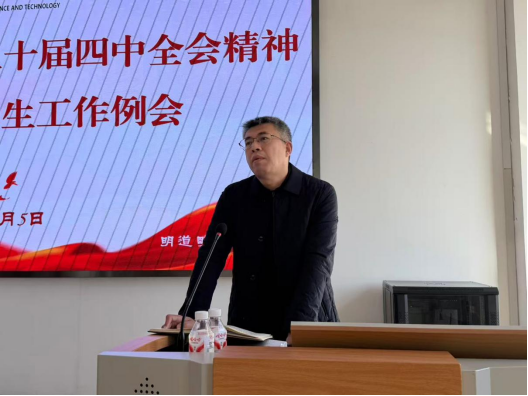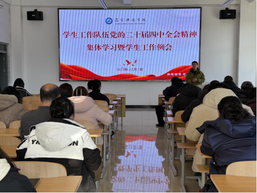 12月5日,学校在智慧东楼101室召开学生工作队伍党的二十届四中全会集体学习暨学生工作例会。学生工作处处长于红斌、招生与就业处处长韩培淳、各学院党总支副书记、全体专职辅导员及兼职辅导员代表参加会议。学生工作处副处长赵海涛主持会议。