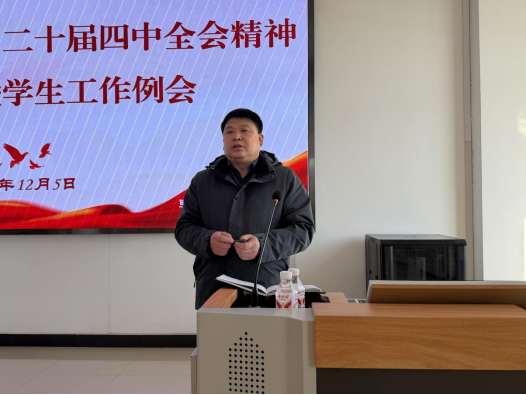 与会人员集体学习了《中国共产党第二十届中央委员会第四次全体会议公报》,系统领会全会召开的时代背景、精神实质、丰富内涵和实践要求。会议指出,党的二十届四中全会是在即将进入基本实现社会主义现代化夯实基础、全面发力的关键时期召开的一次重要会议。习近平总书记的重要讲话高屋建瓴、领航定向,为推动高质量发展、推进中国式现代化提供了科学指南和根本遵循。会议强调,全体学生工作人员要提高政治站位,深刻领会全会的重大意义,切实将思想和行动统一到全会精神上来,筑牢为党育人、为国育才的使命担当,结合学校党委工作安排,以更高站位、更大力度、更实举措谋划好、推进好“十五五”时期学生思想政治教育工作高质量发展。