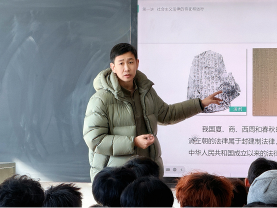 宣讲会上,杨光结合大学生的认知习惯与生活场景,用通俗的表达和鲜活的事例,为同学们呈现了一场生动的法治分享会。他从宪法的诞生历程、核心地位入手,系统讲解了宪法规定的国家根本制度、公民的基本权利与义务等核心内容。杨光针对同学们关心的受教育权、人身自由权、人格尊严权等内容展开解读,让大家明白宪法不仅是治国理政的纲领,更是保护自身合法权益的“护身符”。