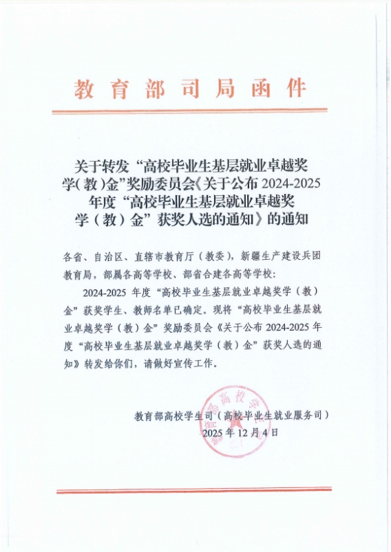 近日,2024—2025年度“高校毕业生基层就业卓越奖学(教)金”获奖名单公布,辽宁省共有13名师生入选。辽宁科技学院2017届档案学专业优秀毕业生毕晨轩名列其中,荣获表彰。高校毕业生基层就业卓越奖学(教)金是由教育部高校学生司、教育部学生服务与素质发展中心指导下,中国长江三峡集团支持、中国教育发展基金会设立,旨在表彰在基层就业创业中表现突出的高校毕业生和教师。