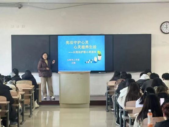 2025年12月4日是第十二个国家宪法日,12月1日至7日是全国第八个“宪法宣传周”。为深入弘扬宪法精神,切实增强学生的法治观念,12月8日,由学生工作处主办、心阳光工作室承办的“以宪法护航心灵成长”讲座在博雅楼1区509教室举行,工作室成员与2025级学生心理委员等80余人参加。活动由学生工作处大学生心理健康教育中心主任王楠主持。