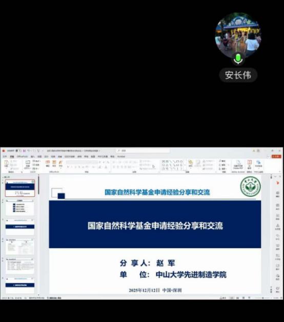 为提升教师国家自然科学基金项目申报质量,助力科研工作高质量发展,12月12日,学校邀请中山大学先进制造学院赵军以腾讯会议的形式,为青年教师作了一场国家自然科学基金申请工作报告,各学院博士教师、科研团队成员及科研骨干人员参加,会议由机械工程学院院长黄志东主持。