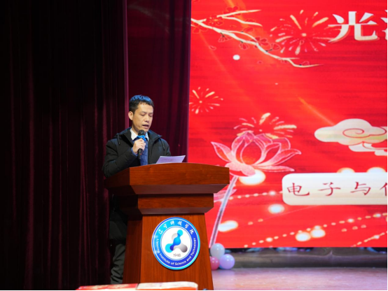 为喜迎新年到来,展现辽科院学子蓬勃向上的精神风貌,进一步加强校园文化建设,增强师生凝聚力, 12月10日,电子与信息工程学院在大学生活动中心举办“光汇电信筑梦新程”2026年元旦暨迎新晚会。学院党总支书记陈溪、党总支副书记潘丽娜、全体辅导员老师及800余名在校学生参加。