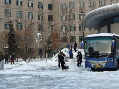 12月23日凌晨,本溪市迎来今冬最强降雪,校园积雪厚重,主干道通行受阻。学校第一时间启动应急预案,后勤管理处迅速调集融雪剂、铁锹、推雪板等物资,并协调铲车进校。各学院负责人一线指挥,学生积极集结、分片包干。铲车先行打通主干道,学生以班级为单位包干到片,机械与人工无缝衔接,效率显著提升。