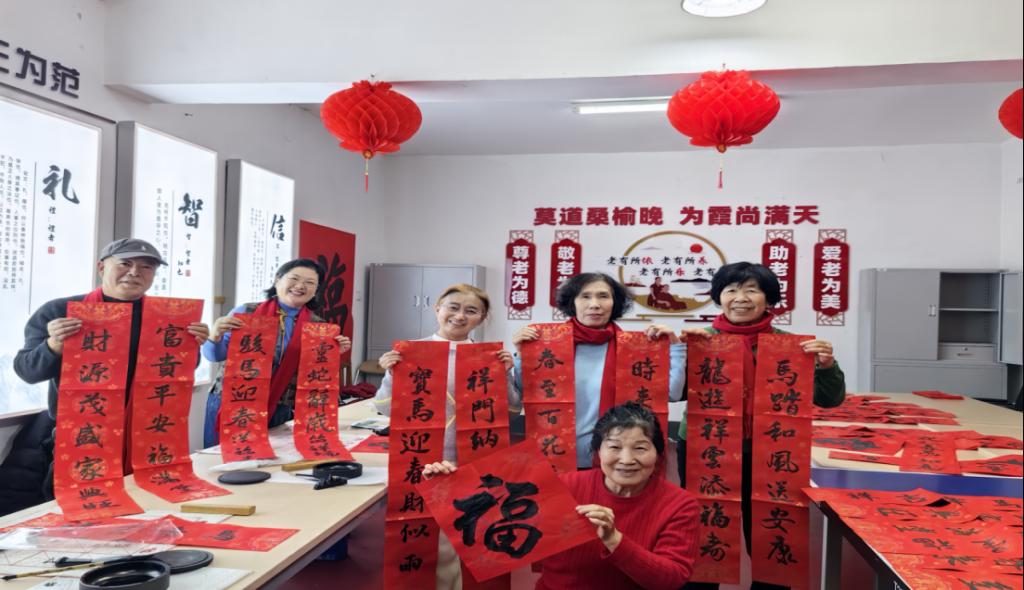 浓浓的情意、真诚的祝福溢于字里行间,老同志拿着一副副寓意喜庆、饱含祝福的春联,喜笑颜开,一副副充满新春祝福的春联、一个个洋溢着喜气和欢乐的“福”字跃然纸上,融合着厚重的墨香,共同编织出2026新春的序幕。春联和“福”字,承载着满满的新春祝愿,既彰显了传统文化的魅力,也展现了老干部退休不褪色、积极奉献、发挥余热、回馈社会的良好精神风貌。