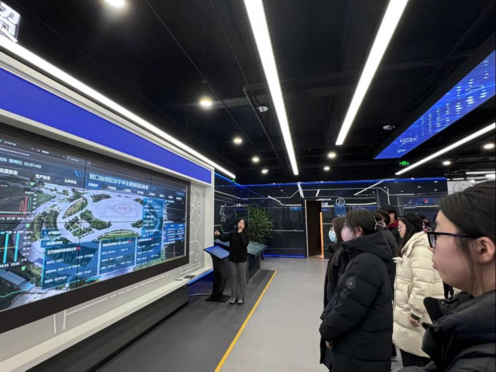 随后,研学队伍来到营口市工业互联网数字赋能中心,切身领略数字化转型为传统产业带来的革新力量。通过实地观摩与互动交流,同学们对“数字辽宁 智造强省”建设的内涵有了更具体的理解,深刻认识到数字技术在推动产业升级、提升核心竞争力中的关键作用,进一步拓宽了职业视野与发展思路。