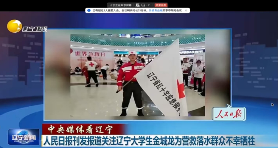 会议伊始,辅导员韩珍娇结合视频资料介绍了金城龙同志生平事迹。2026年1月23日,在沈阳浑河畔刺骨寒风中,辽宁中医药大学学生、退役军人金城龙面对群众坠入冰窟的危急时刻,挺身而出、奋力施救,不幸英勇牺牲,年仅26岁。他曾携笔从戎,戍守海疆8400余小时;热心公益,累计无偿献血13次、总量达4000毫升。2023年他主动加入辽宁省红十字救援队、沈阳市闪电应急救援队和平安志愿者团队,累计参加救援培训、保障任务等活动40多次。他以生命践行初心,用热血浇灌信仰,在平凡坚守中铸就非凡,以热血谱写新时代雷锋精神的壮丽赞歌。