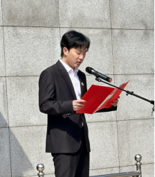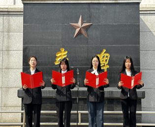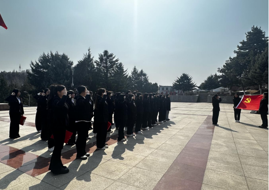 铿锵之声忆峥嵘,铮铮誓言映初心。学生党员代表孙喜良以“传承英烈精神、勇担时代使命”为题发言。表明作为新时代学生党员,要铭记先烈遗志,把对党忠诚、为民造福融入血脉,以“格物致和,经世济用”的经管精神和实际行动践行初心使命。边宇涵等4名学生骨干带来深情朗诵,以铿锵之声重温红色记忆,表达了对革命先烈的敬仰与传承革命精神的坚定信念。随后,全体党员面向党旗重温入党誓词,铮铮誓言在烈士陵园上空久久回荡,彰显了党员师生不忘初心、牢记使命的坚定决心。