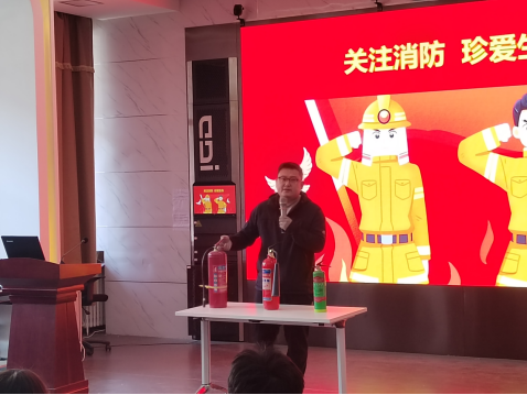 随后,王慧祥老师为师生开展消防安全知识培训,结合高校实验室易燃易爆、仪器密集的特点,详细讲解灭火器材种类、适用场景及“提、拔、握、压”操作要领,重点介绍应急疏散原则、初期火灾处置技巧及逃生注意事项,用通俗语言和校园案例,帮助师生全面掌握实用安全知识,为实操演练奠定理论基础。
