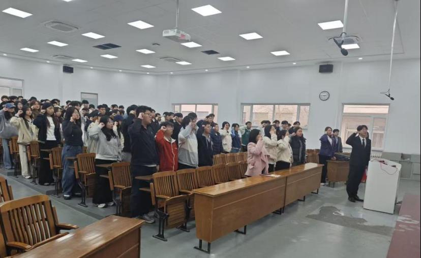 活动尾声,主持人智能BG241班刘克同学带领全体参会人员起立、举起右拳,进行庄严宣誓。“国家安全,重于泰山;青年誓言,掷地有声。”铿锵有力的誓言在教室回荡,充分展现出电信学子维护国家安全的坚定信念、责任担当与青春朝气。