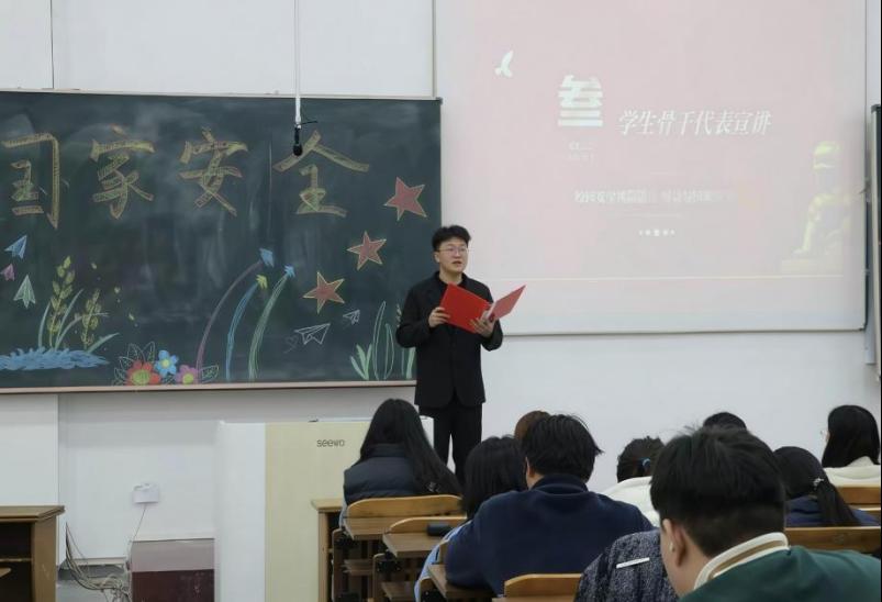 学生干部代表大数据BG232班王俊博同学结合校园权益工作发言,强调网络安全、反诈防骗、个人信息保护等日常小事都关乎国家安全,并发出倡议:远离诈骗陷阱、保护个人信息、主动学习安全知识。学生代表物联BG252班朴英畅同学分享了成功劝阻室友落入电信诈骗陷阱的事例,让同学们深刻认识到网络与数据安全的重要性,并号召大家常怀忧患意识,从点滴做起,守护国家安全,做有担当的新时代大学生。