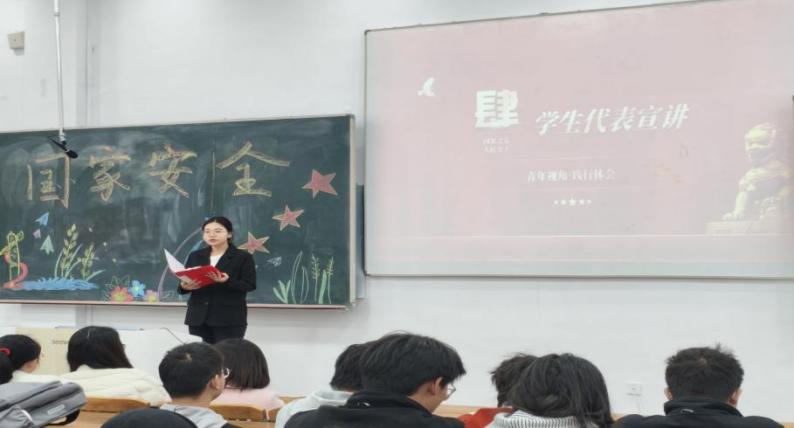 活动伊始,学院优秀退役士兵物联BZ251班张勇同学结合军旅生涯中的真实经历,深刻阐释国家安全的重要意义与新时代青年的责任使命。用朴实真挚的语言讲述守护国家安宁的切身感悟,结合大学生兼职风险、拍照不慎泄露信息等真实案例,让安全警示更贴近校园生活。他的分享既有军人的坚定担当,也有贴近青年的温情提醒,在现场引发强烈共鸣,有效增强了同学们的国家安全意识与自我保护能力。