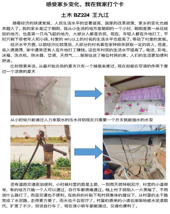 通过这次线上线下联合打卡活动,学院学生用自己朴实、深情的话语描绘着家乡在或五年、或十年中的变化。变化从一点一滴到翻天覆地,镜头记录下的场景是人民生活不断改善的真实写照。同学们用照片记录着我们身边发生的喜人变化,深情地向我们的国家、我们的党告白,用实际行动迎接党的二十大胜利召开。